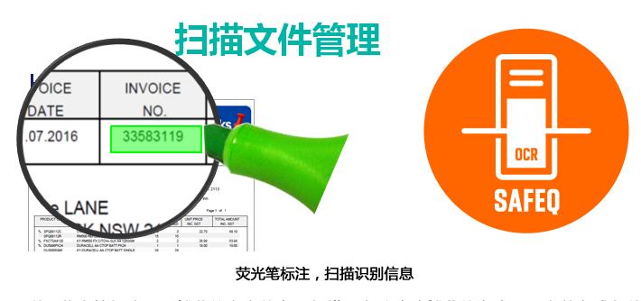 利用(yòng)熒光(guāng)筆标注需要捕獲的(de)文字信息,掃描後自動将該捕獲信息應用(yòng)于文件名或其他(tā)用(yòng)途上。